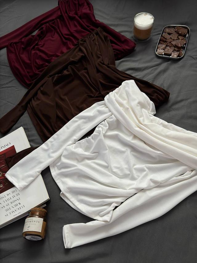 | Тип призначення | Жіночий базовий лонгслів із відкритими плечима весняний лонг обтислий довгий рукав із витонченим драпіруванням |