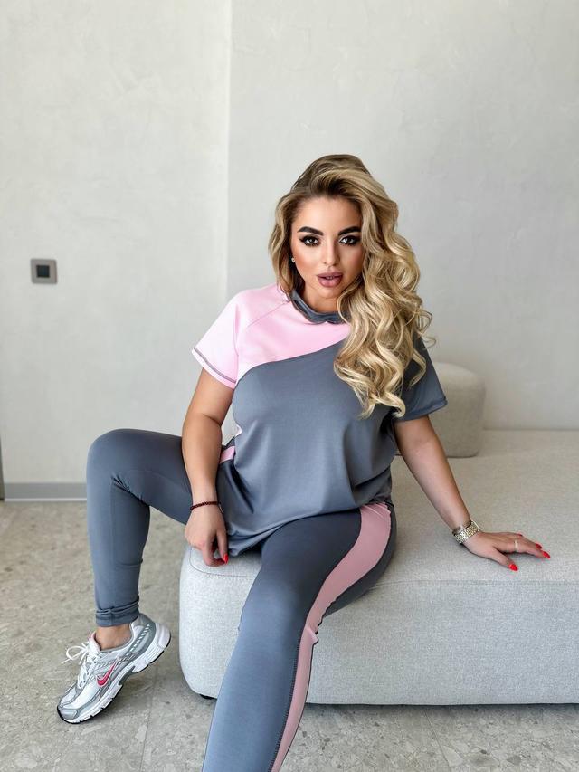 Широка подовжена футболка, зручні лосини з високою посадкою, приємна на дотик тканина роблять цей костюм.