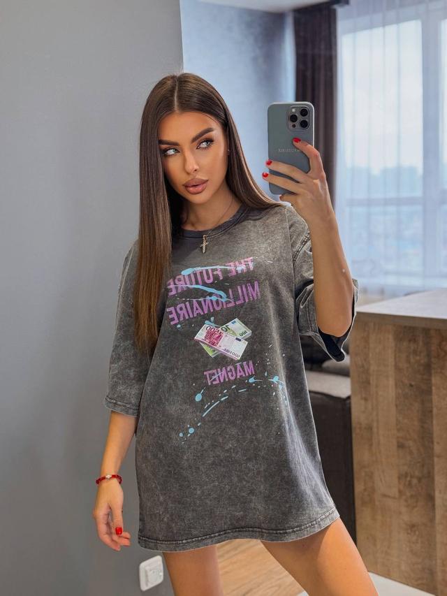 | Тип призначення | Базова літня трендова жіноча бавовняна графіт вільна подовжена футболка варенка оверсайз 42-48 Туреччина |