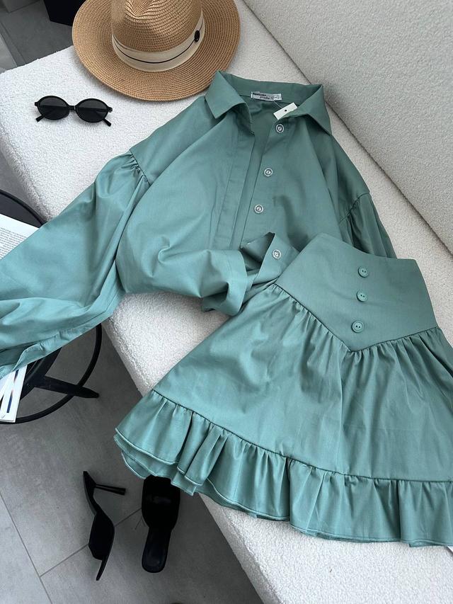 | Тип призначення | Ідеальний жіночий базовий ефектний костюм-сорочка та коротка спідниця коттон поплін |