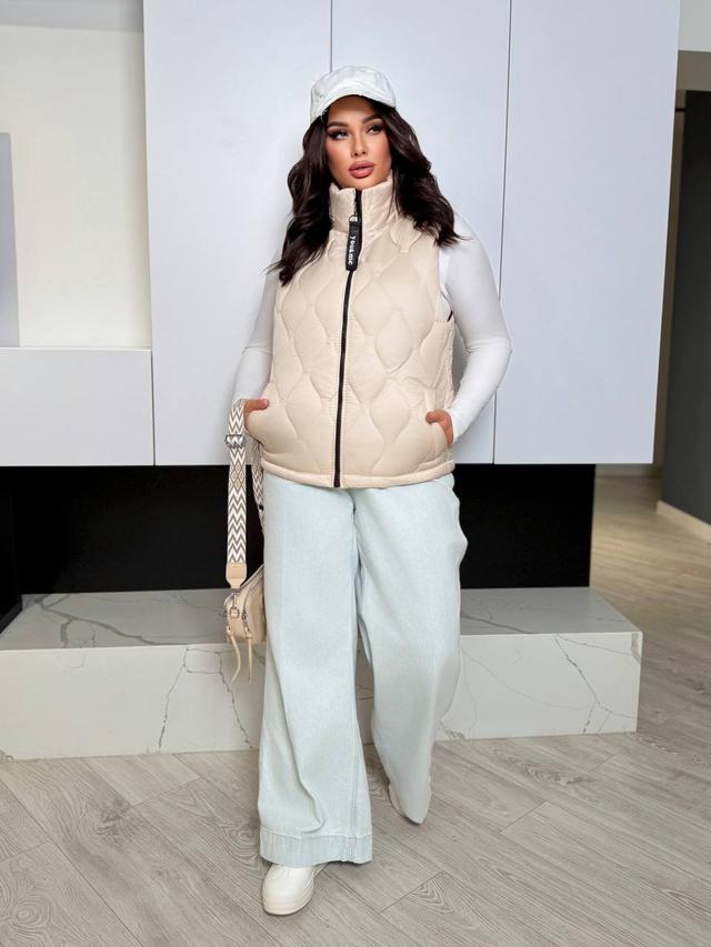 Отримайте цю позицію безкоштовно при покупці «Базовий жіночий теплий жилет стильна весняна стеганний жилет безрукавка на блискавці з кишенями батал»