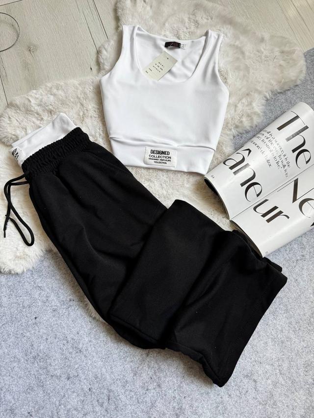 | Тип призначення | Стильний жіночий літній прогулянковий спортивний костюм прямі штани двонитка топ майка мікродайвінг |