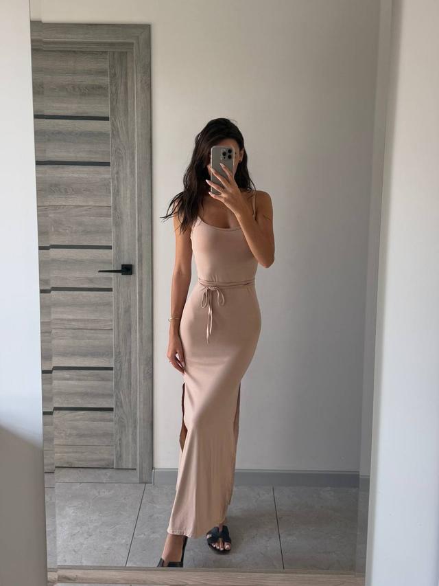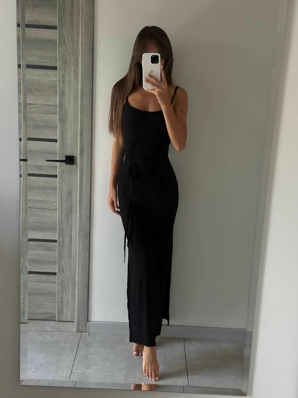 | Тип призначення | Жіноче легке літнє довге обтисле плаття майка максі з поясом зав'язкою сарафан із 2 розрізами віскоза |