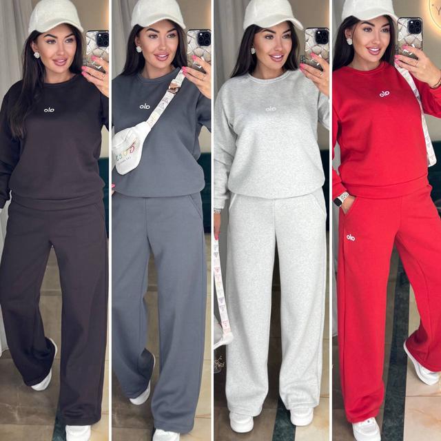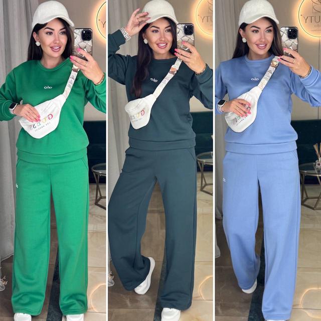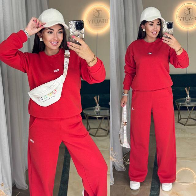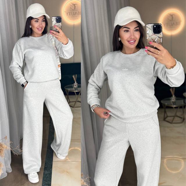 | Тип призначення | Жіночий базовий прогулянковий теплий осінній костюм ALO на флісі батнік кофта та прямі штани тринитка на флісі |