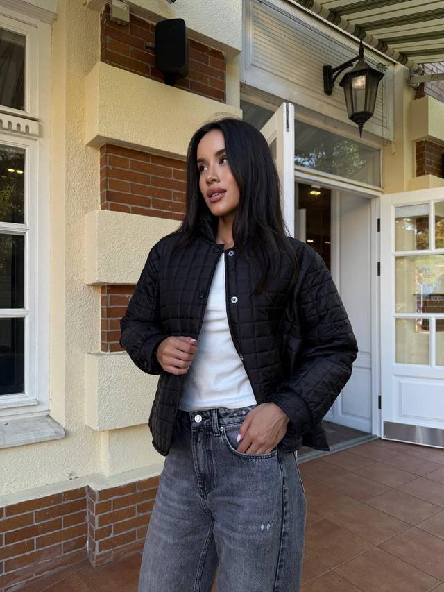 Осіння базова тепла жіноча стьобана куртка в стилі Зара тепла бомбер на кнопках без капюшона